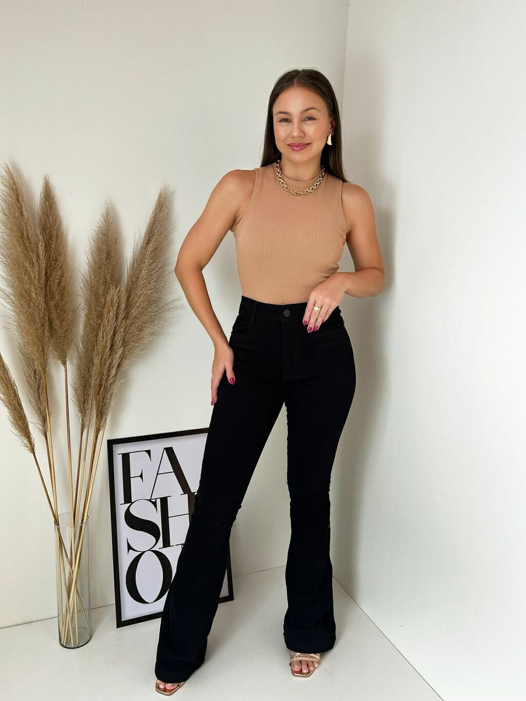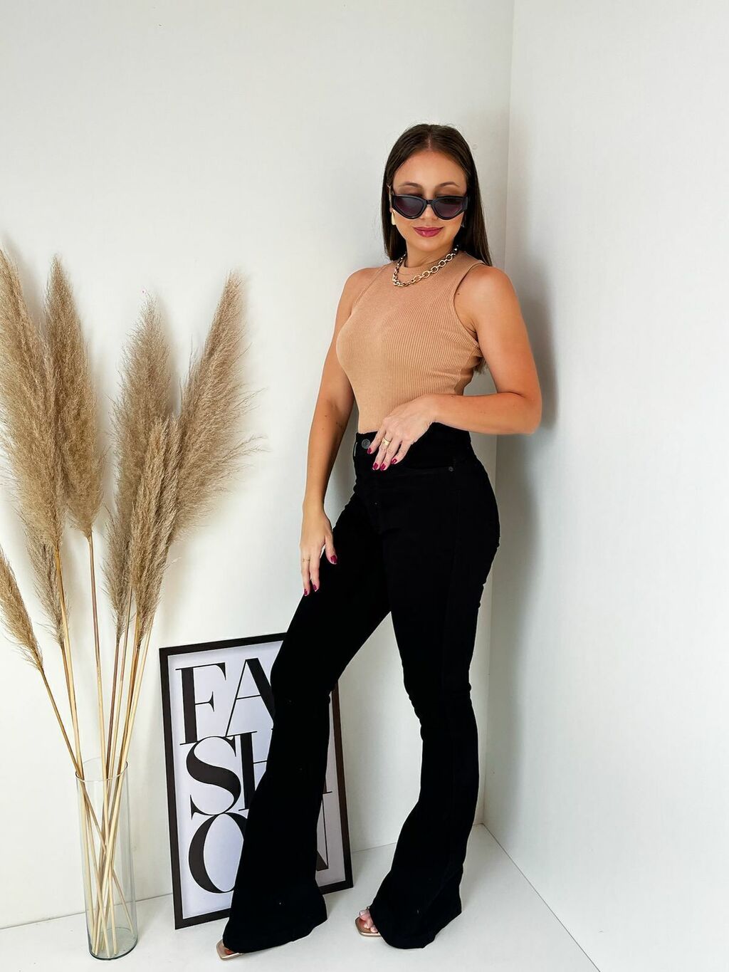 A Calça Flare é a peça-chave que você precisa nesta estação! Com um design de cintura alta e bolsos na frente e atrás, ela combina praticidade e estilo.